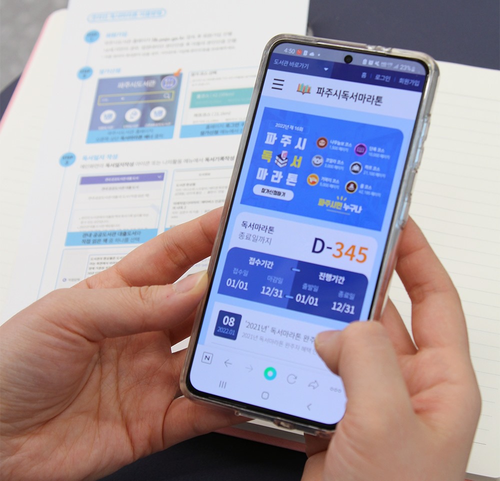 ‘독서마라톤’은 독서량을 마라톤에 비유(1p=1m)해 진행하는 파주시의 대표적인 책 읽기 운동이다.