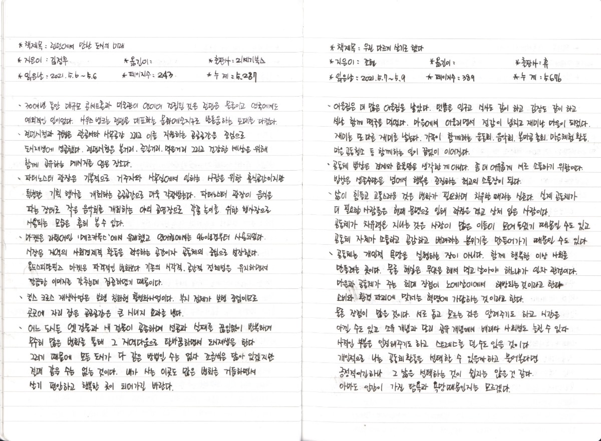 “독서마라톤을 온라인으로 진행하게 되면서 무엇보다 좋은 것은 독서일지가 해마다 누적되기 때문에 개인 기록으로 남길 수 있다는 거예요. 다운로드도 가능하기 때문에 책으로 만들 수도 있고요.”