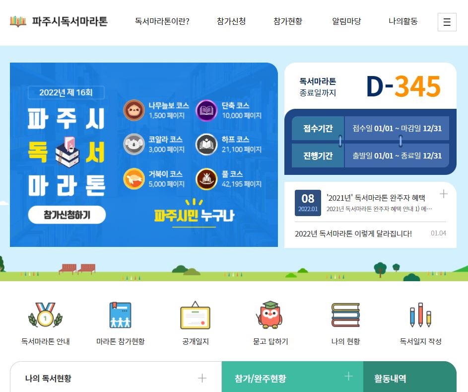 파주시 독서마라톤 홈페이지 PC버전 이미지