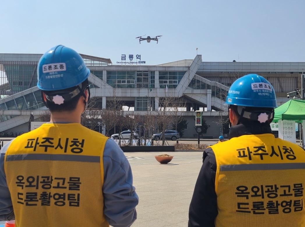 파주시, 해빙기 드론 활용 옥외광고물 안전 점검 실시