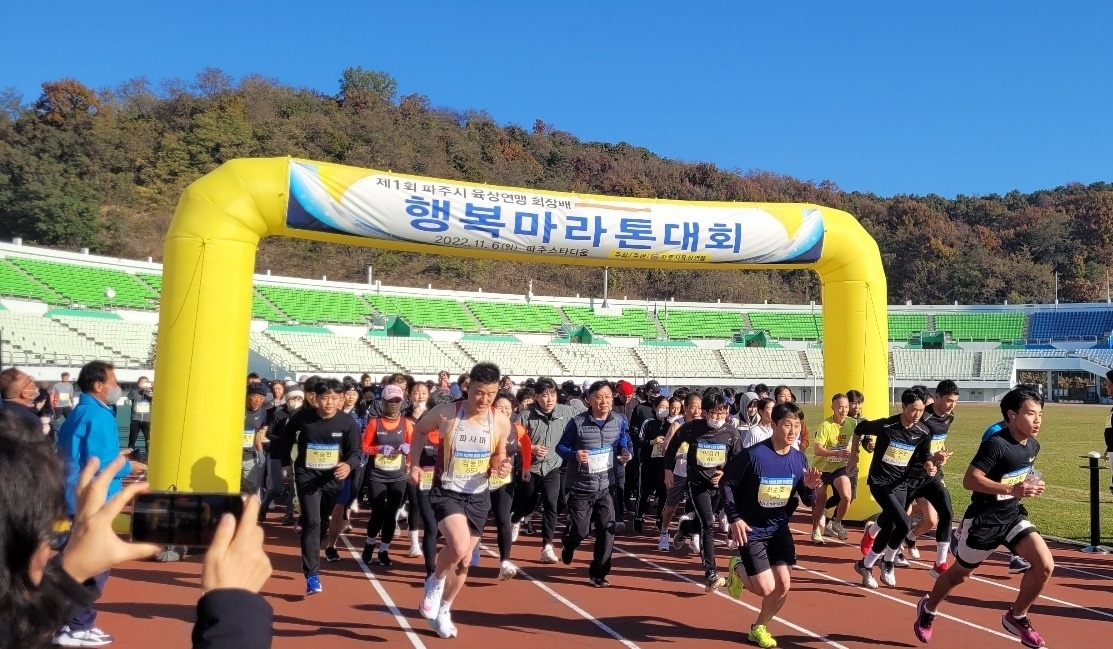 2023년 11월 12일에 파주시 스타디움에서 ‘제2회 행복마라톤’이 개최된다. 이 대회는 파주시 육상경기연맹에서 주최하고 있으며, 2022년 11월 개최되어 파주시민들에 큰 호응으로 성황리에 마무리되었다. ‘행복’이란 이름으로 파주시민들에게 건강과 행복을 주는 대회로 자리 잡아가고 있는 일석이조의 ‘행복마라톤’을 소개한다.