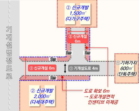 | 다가구주택 등의 개발행위에 따른 신규도로 개설방안(예시) | |