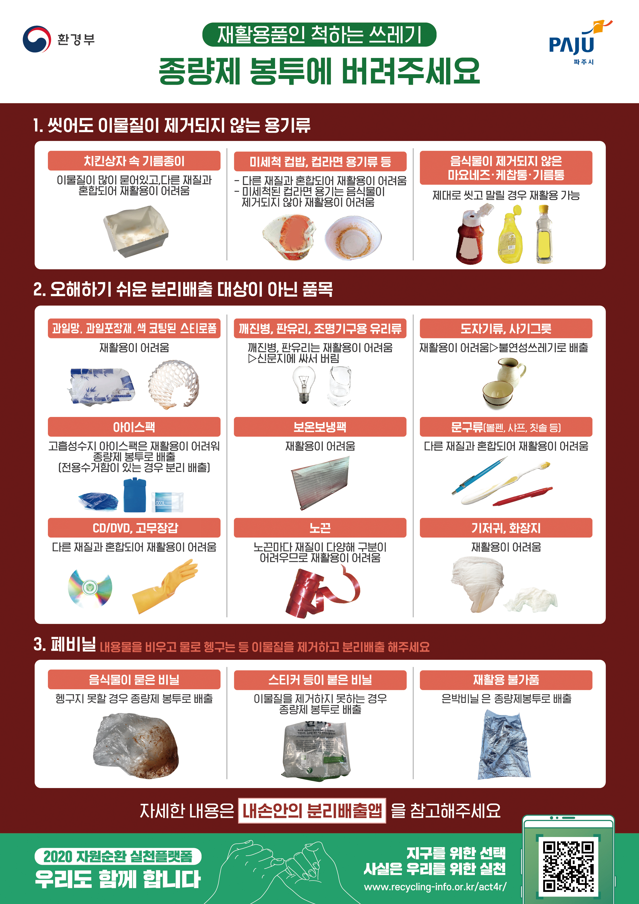 - 비닐 코팅된 광고지, 비닐류, 기타 오물이 섞이지 않아야 함