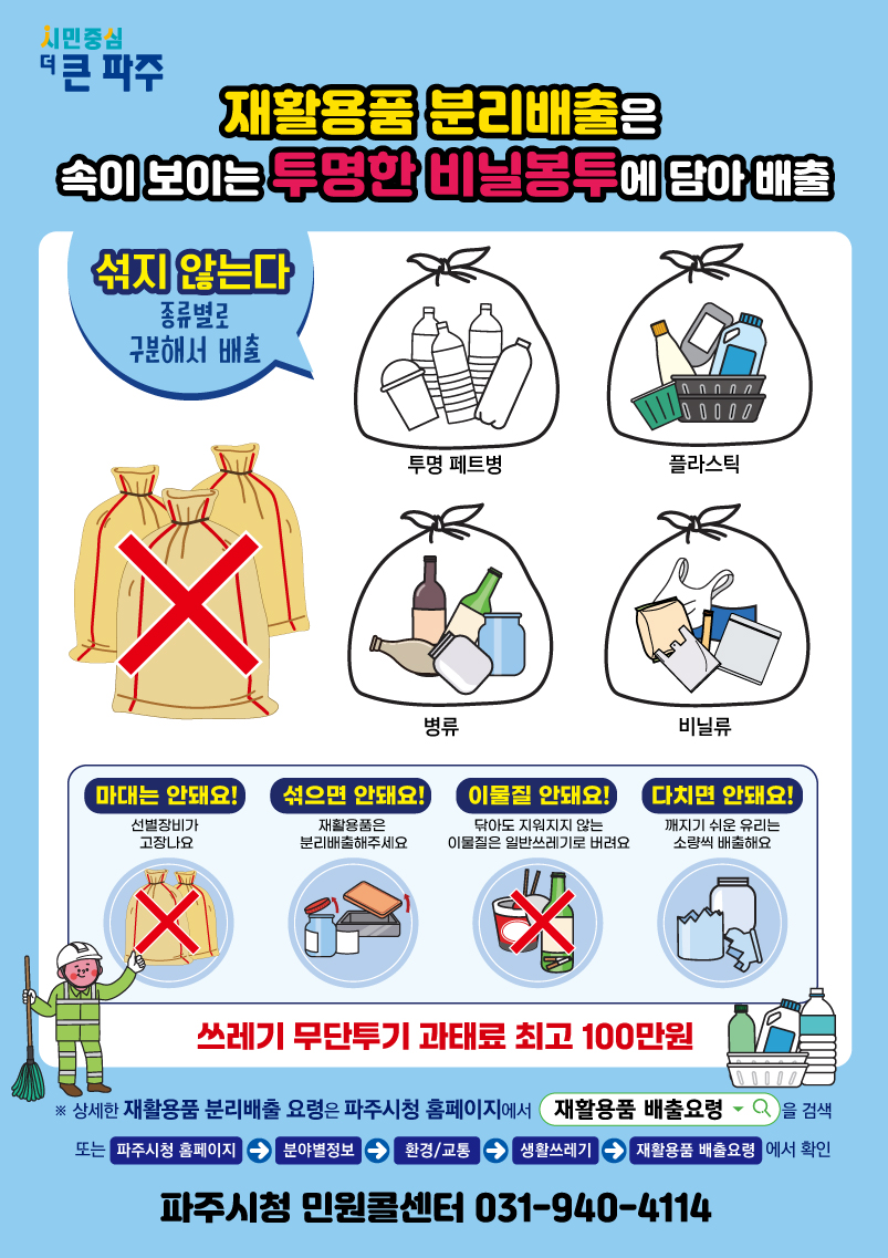 - 내용물을 비우고 물로 한번 헹군 후 가능하면 압착